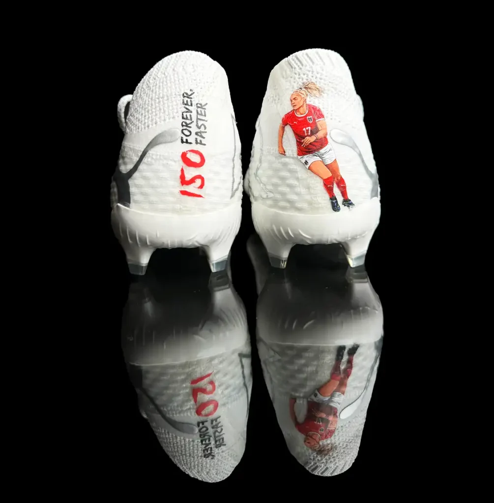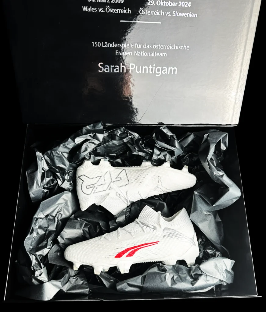 In enger Zusammenarbeit mit Puma präsentieren wir den exklusiven Puma Future 7 Ultimate, customized für die Kapitänin der österreichischen Frauen-Nationalmannschaft, Sarah Puntigam. Dieses exklusive Paar ist nicht nur ein Zeichen sportlicher Exzellenz, sondern auch eine Hommage an eine der prägendsten Spielerinnen in der Geschichte des österreichischen Fußballs.